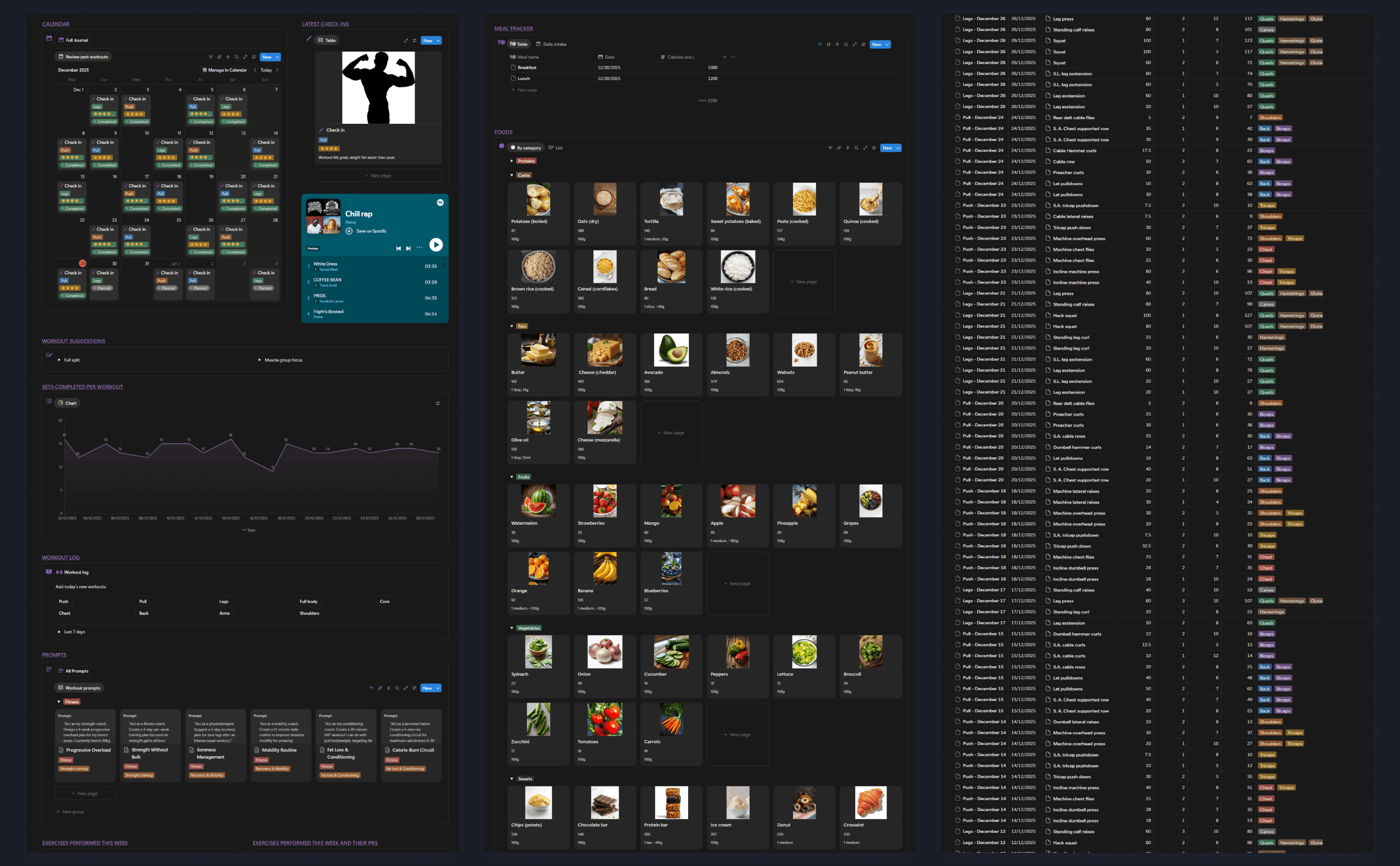 Plan workouts, log sets and reps, track PRs, and visually monitor your progress — all inside one clean Notion system built for aesthetic training.